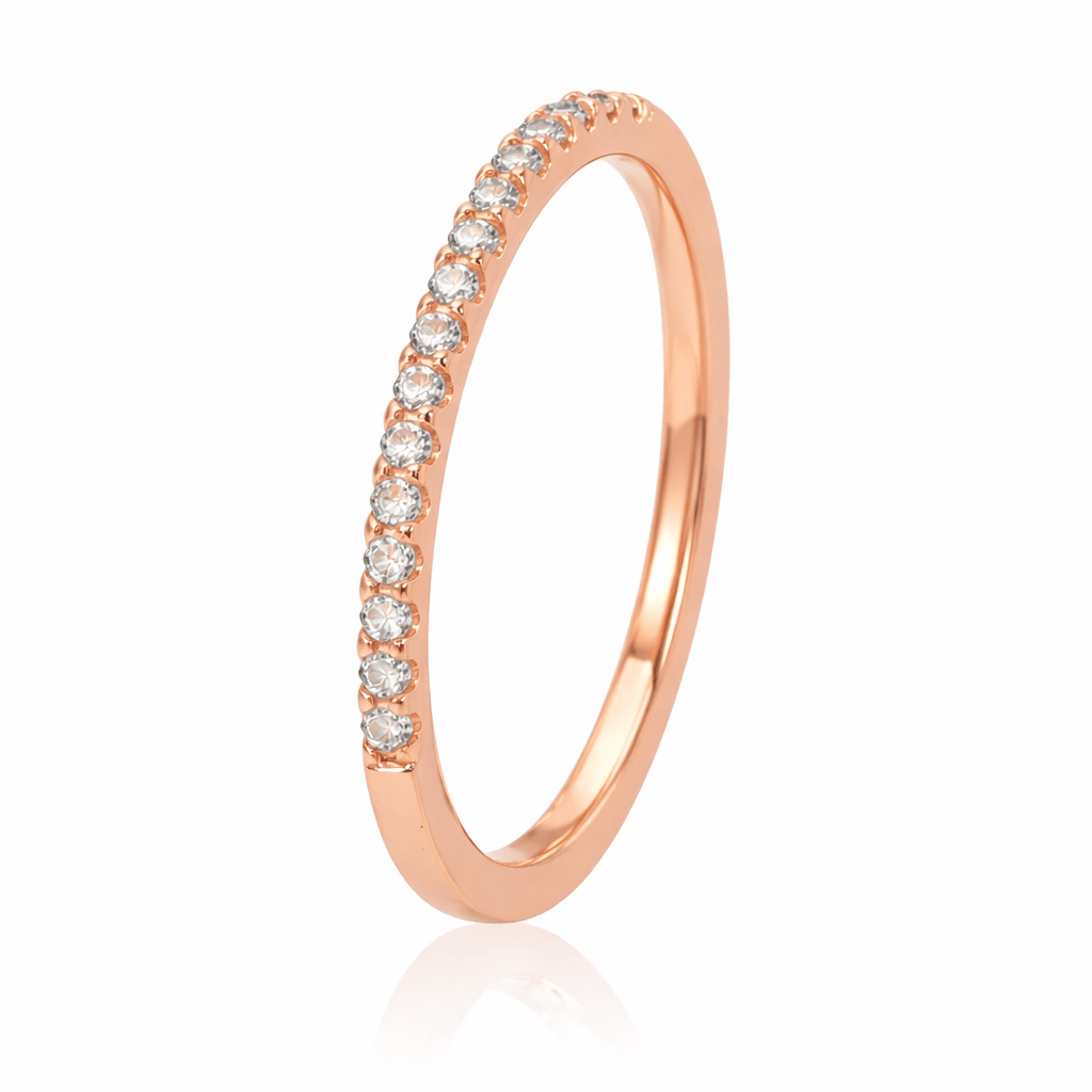 Shimmering diamonds wrap half of the way around this pristine 14K gold stackable ring. Impress in any situation with this classic 0.20ct diamond stacking ring. Iridescent 0.20ct diamonds light up this stacking diamond ring.