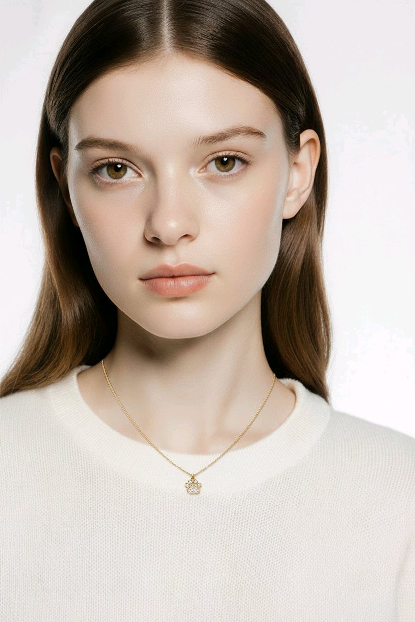 Celebrate unconditional love with this 14K gold diamond dog paw necklace, crafted in solid gold and accented with shimmering natural diamonds. Designed with uniform diamond stones for a clean, elegant look, this dainty paw print pendant is a timeless symbol of loyalty, companionship, and love for dogs.