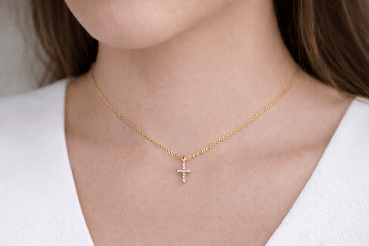 Timeless faith meets elegant craftsmanship. This medium-sized cross pendant features natural diamonds set in lustrous 14k gold. Perfect for everyday wear or meaningful gifting.