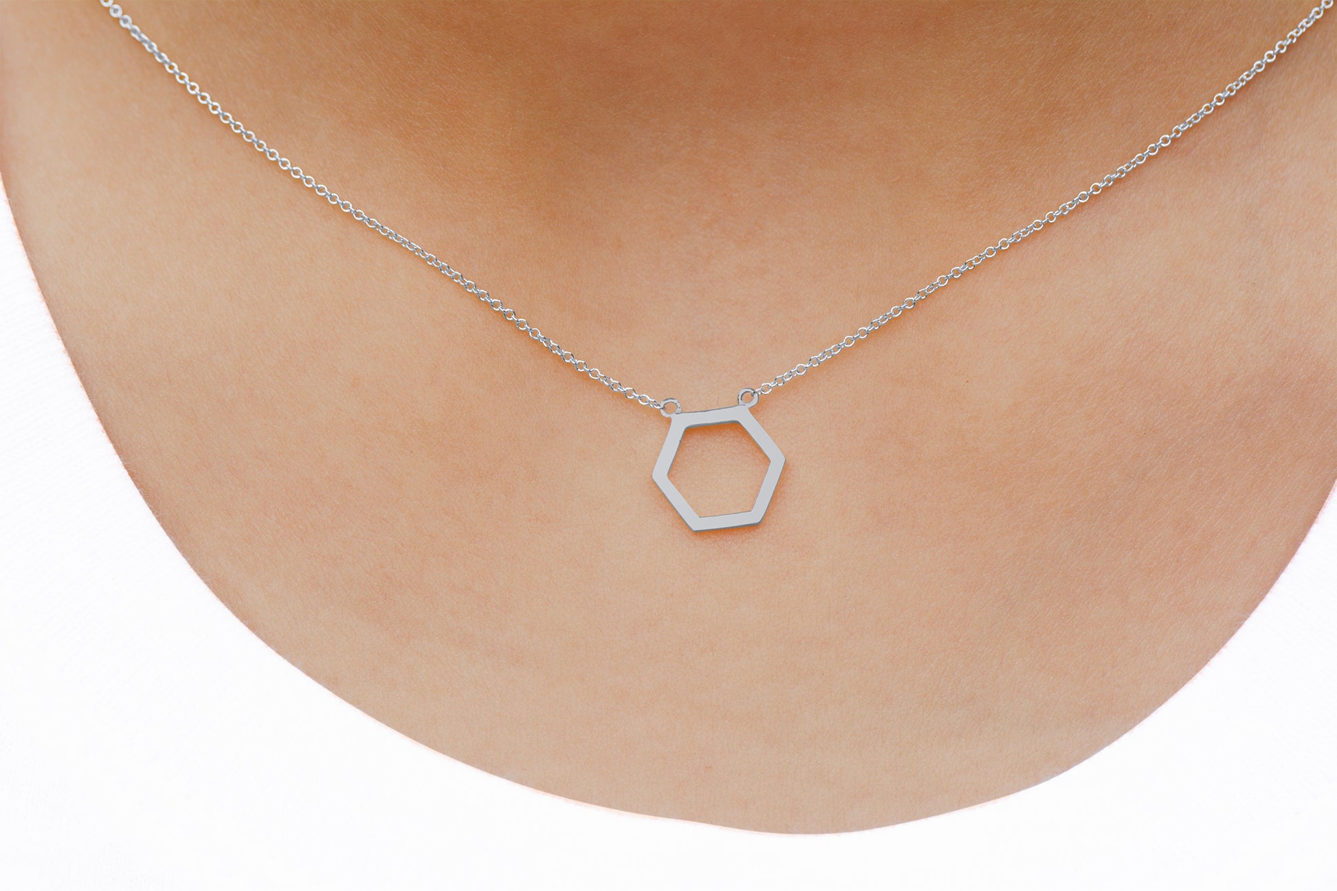 14k Gold Hexagon Necklace, Geometric Honeycomb Shape Small Charm Pendant