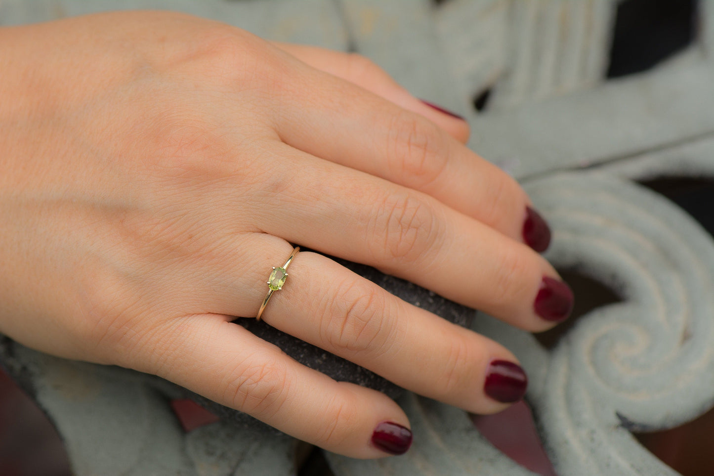 14k Solid Gold Oval Shape Green Peridot Gemstone Stacking ring